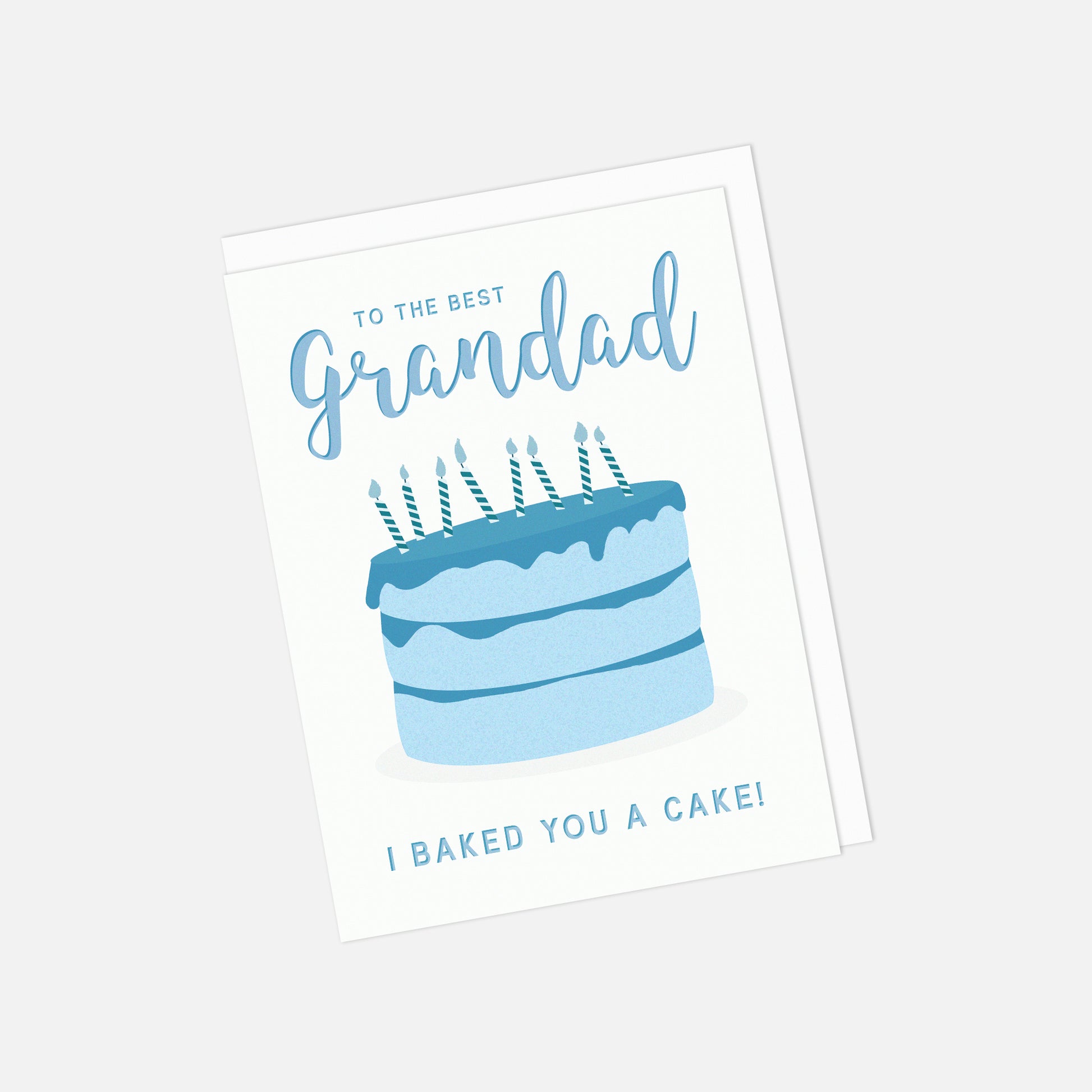 Brighten your grandad’s day with this pastel-toned birthday card. Featuring a blue layered cake and candles, it’s a cheerful way to celebrate his special day.