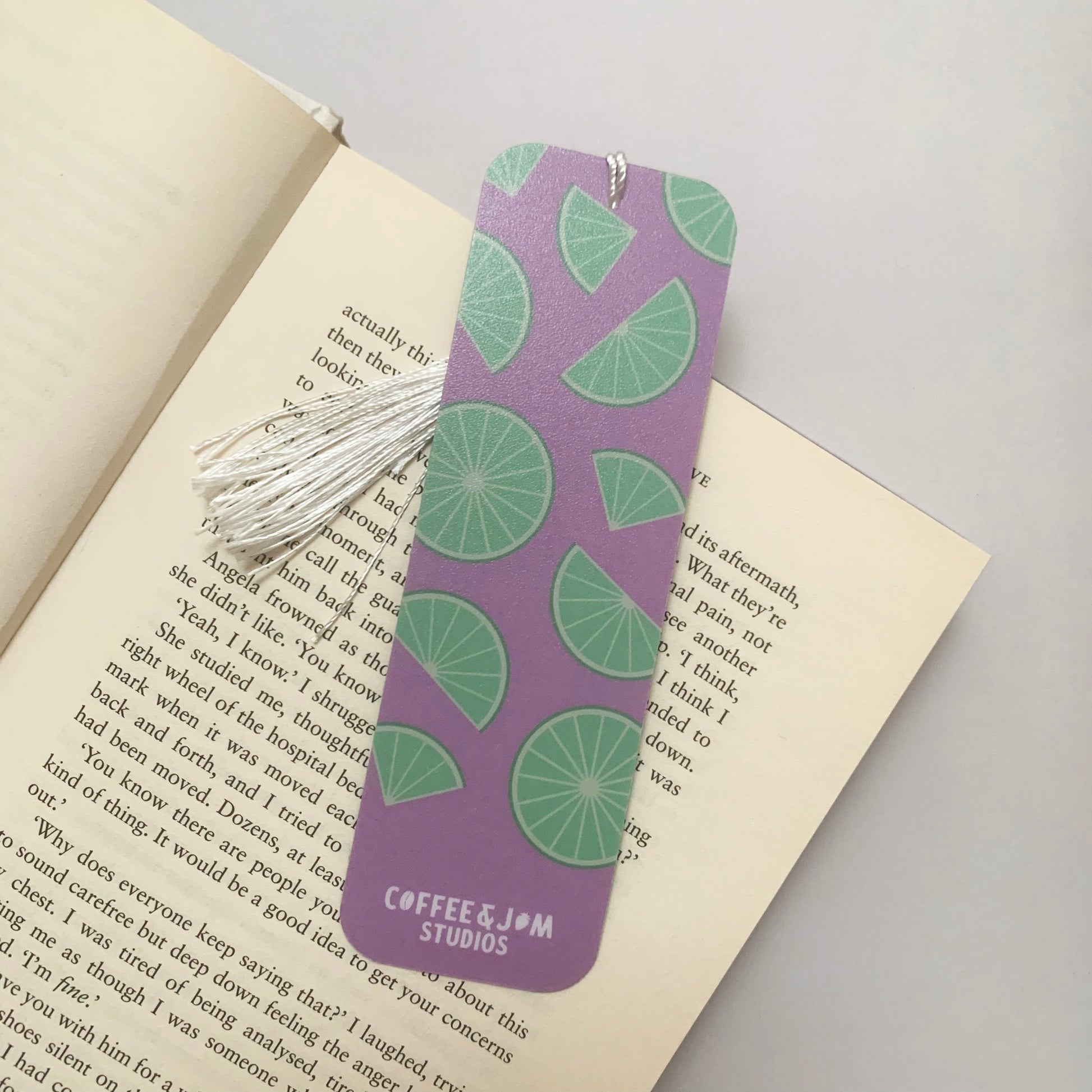 Freshen up your reading experience with this zesty lime slice bookmark! Set against a vibrant purple background, the playful green citrus design brings a cheerful burst of colour to any book or planner. Crafted with a smooth matte finish and finished with a soft white tassel, this bookmark is both eye-catching and practical. Whether you're deep in a novel or flipping through study notes, it’s the perfect way to mark your page in style.