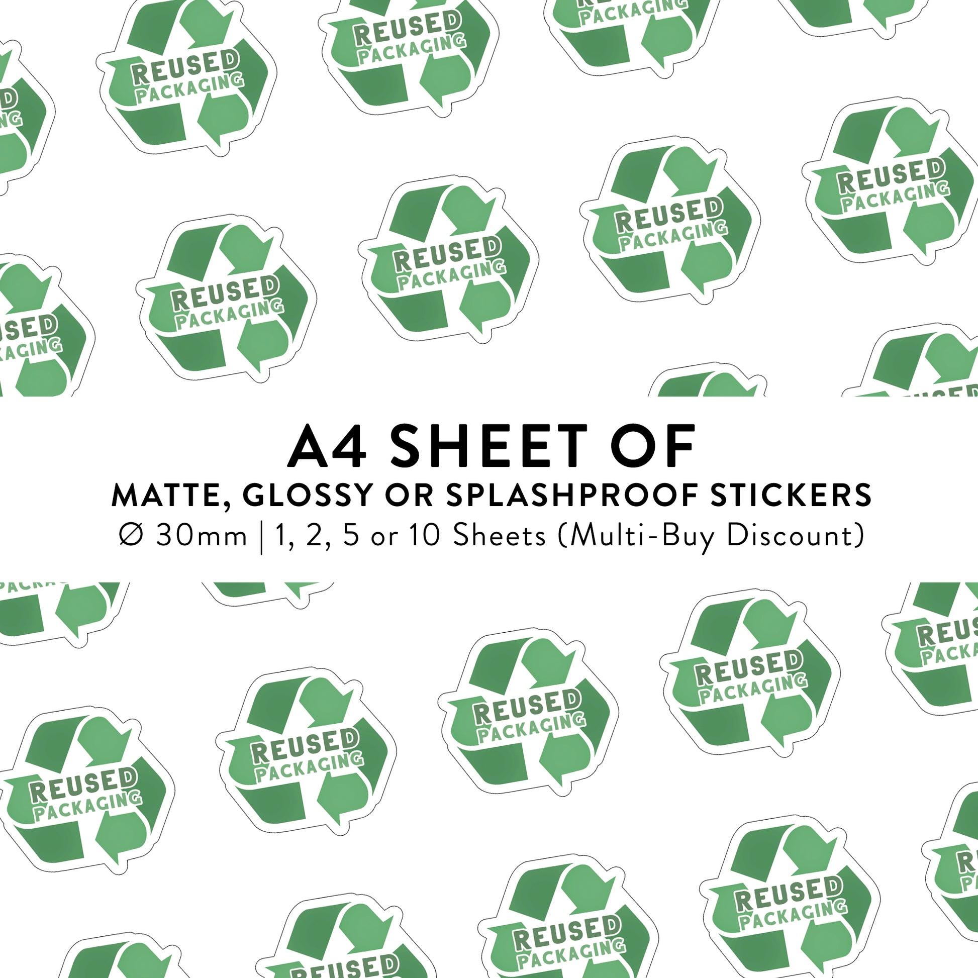 ♻️ A4 Sheet of 35 ø 30 mm Reused Packaging - Matte/Glossy Splashproof Stickers – Business Packaging