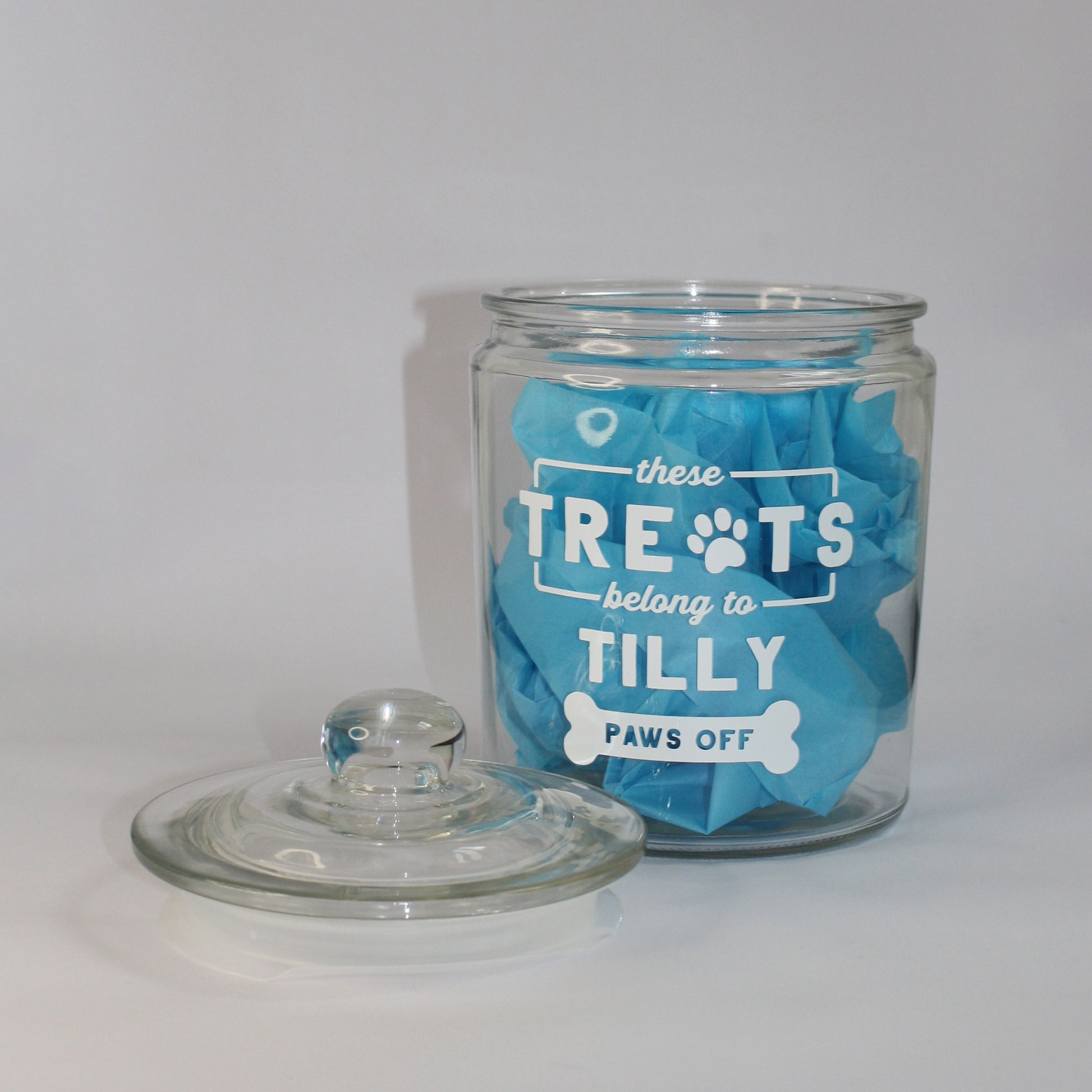 🍖 Personalised Dog or Cat Treat Food Glass Storage Jar with Airtight Lid | Great Gift for Dog Parent | 'These Treats Belong to' Jar