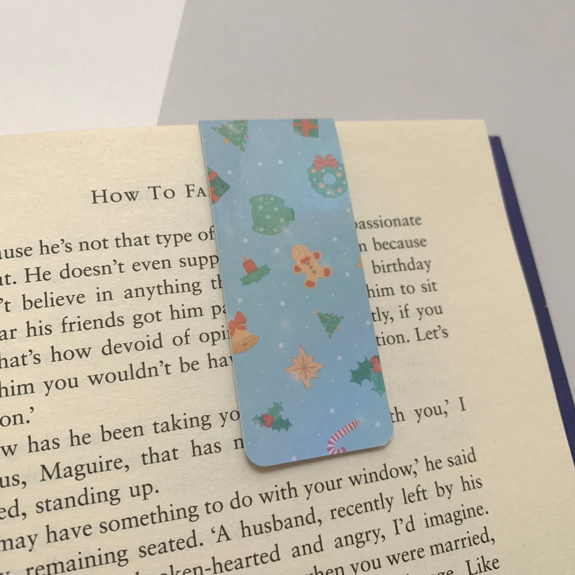 Sized at 1.25 × 3 inches (folded), it clips snugly over your page with two small magnets, ensuring it stays put through every chapter. With its cheerful blue festive design, it’s a cosy little accessory for winter reads, planners, or as a thoughtful stocking filler.