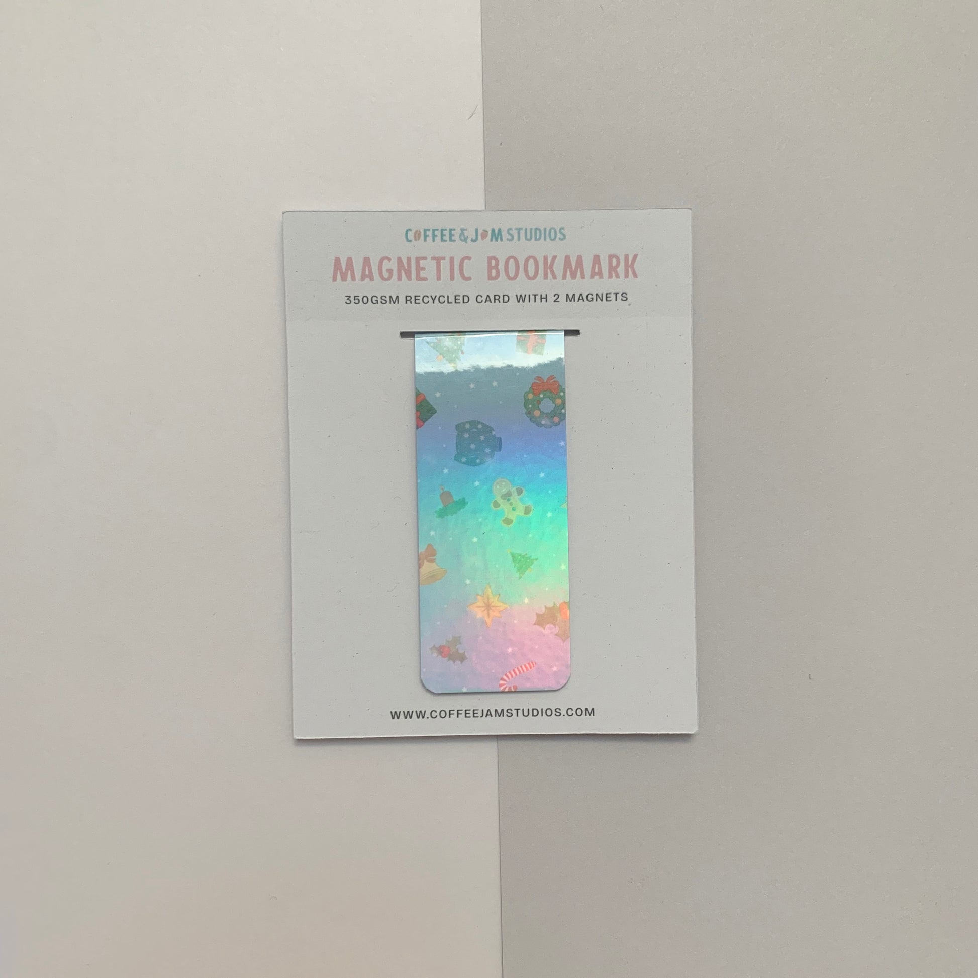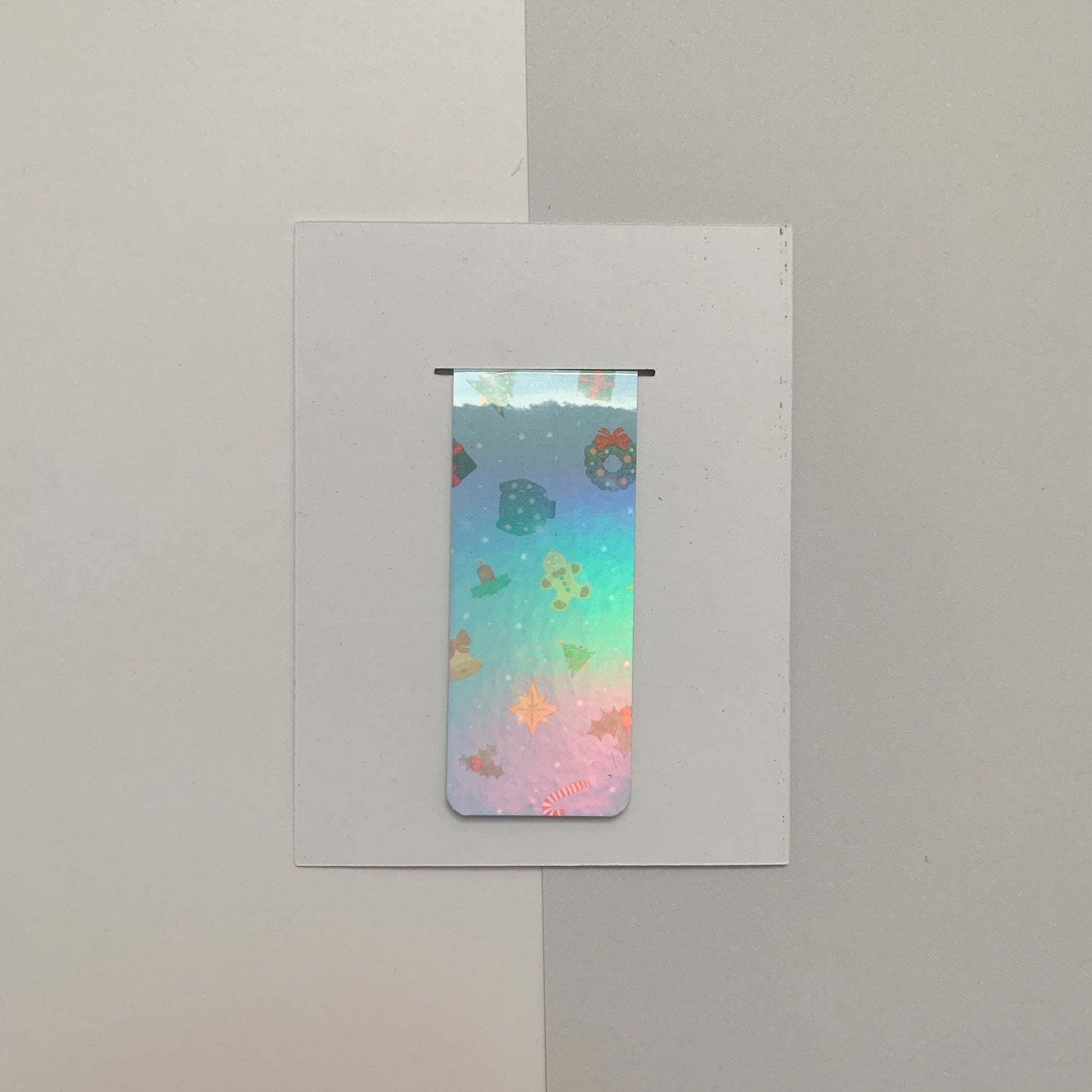 Bring festive cheer to your books with this Blue Christmas mini magnetic bookmark. Printed on recycled card and finished with a dazzling holographic overlay, it catches the light like frosty snowflakes while keeping your pages safe.